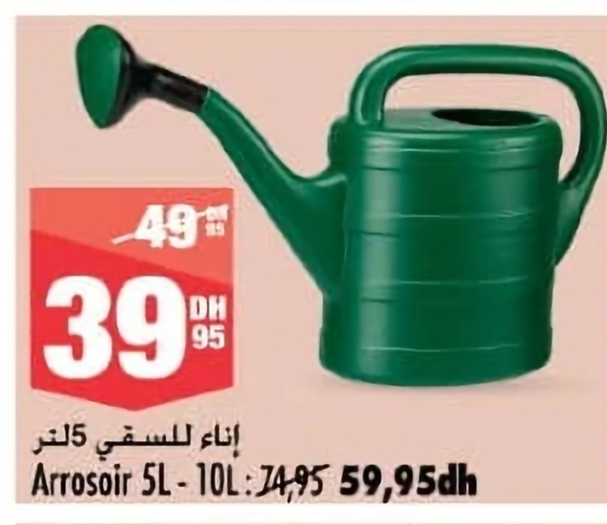- Arrosoir pratique en plastique avec capacité de 5 litres. Bec long pour arrosage précis des plantes. Léger et facile à transporter. Idéal pour jardin, balcon et plantes d’intérieur.
