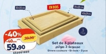 Bon Plan Set de 3 plateaux en bois – طقم 3 صواني خشبية Kazyon 59.90 DH