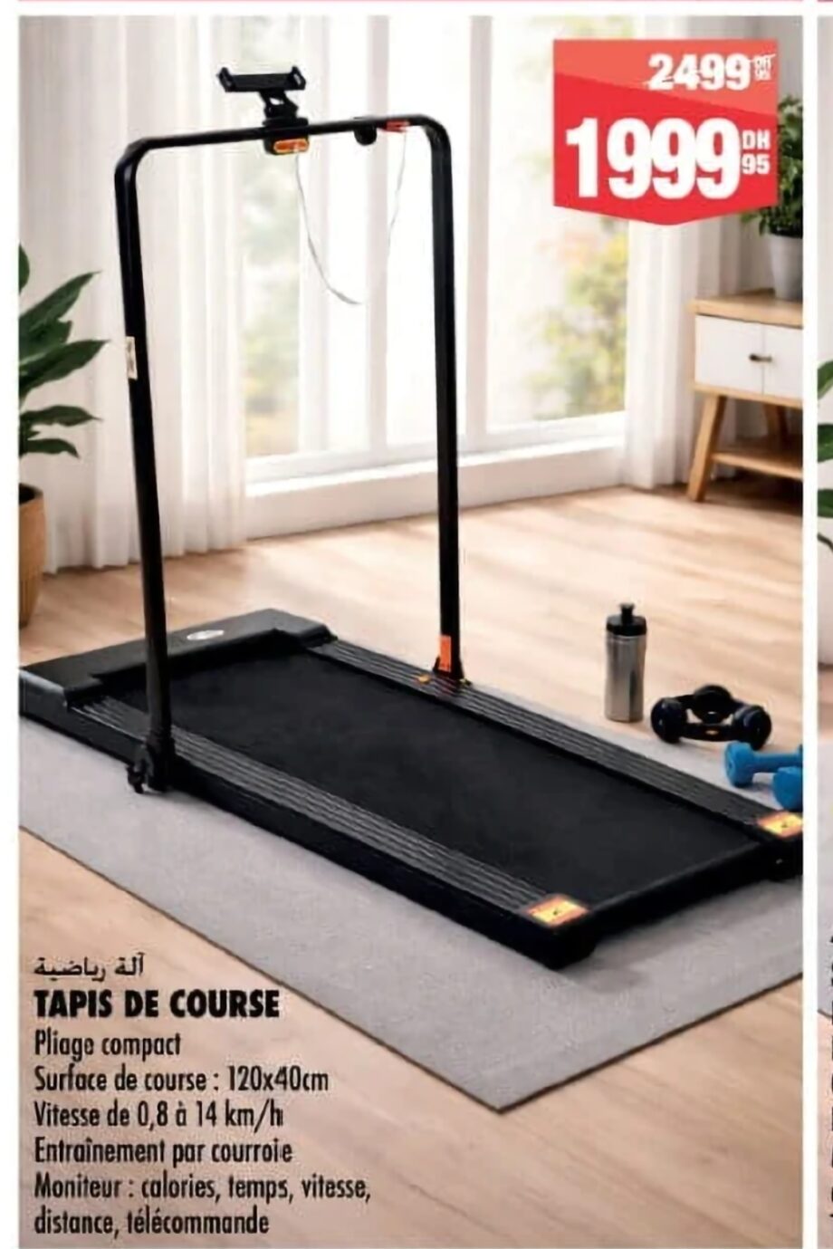- Tapis de course compact pliable idéal pour entraînement à domicile. Offre plusieurs vitesses adaptées à la marche et au jogging léger. Surface de course confortable avec affichage des données comme vitesse, distance, calories et temps. Design peu encombrant permettant rangement facile après utilisation. Parfait pour maintenir une activité physique quotidienne à la maison.
