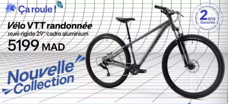 - Découvrez le tout nouveau vélo VTT de randonnée Rockrider, une pièce maîtresse de la nouvelle collection conçue pour les passionnés de plein air. Ce modèle semi-rigide est équipé d’un cadre en aluminium de haute qualité alliant légèreté et robustesse, ainsi que de grandes roues de 29 pouces qui assurent une excellente capacité de franchissement et une stabilité optimale sur les terrains accidentés. Que ce soit pour des balades sportives ou des randonnées plus techniques, ce VTT offre un confort de pilotage exceptionnel. Pour garantir votre sérénité, ce produit bénéficie d’une garantie totale de 2 ans sur tous ses composants.