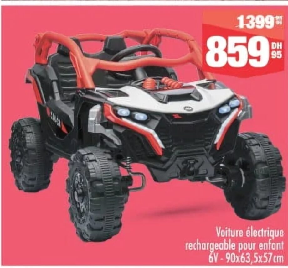- Voiture électrique type buggy pour enfant avec design sportif et roues larges. Batterie rechargeable 6V offrant une expérience de conduite amusante. Siège confortable avec volant facile à manipuler. Structure robuste adaptée à l’utilisation intérieure et extérieure. Parfaite pour divertir les enfants tout en développant leur motricité.