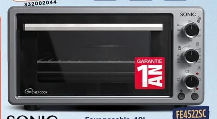 • Four électrique SONIC d’une capacité de 40 litres. Équipé d’un thermostat réglable, double vitrage, intérieur émaillé et technologie Turbo Fan. Garantie 1 an.