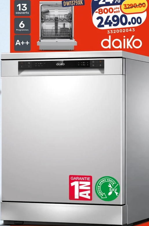 Lave vaisselle 13 couverts DAIKO – غسالة أواني Kazyon 2490.00 DH